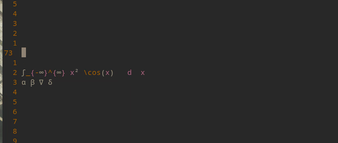 Mejora la visualización del documento en Vim al reducir las expresiones a una forma más legible. Tex Conceal reemplaza partes del código LaTeX con representaciones más compactas y legibles, lo que hace que el documento sea más claro y fácil de entender mientras se edita en Vim. Por ejemplo, puede ocultar los comandos LaTeX complejos y mostrar símbolos más simples en su lugar, lo que reduce el desorden visual y mejora la legibilidad del documento.